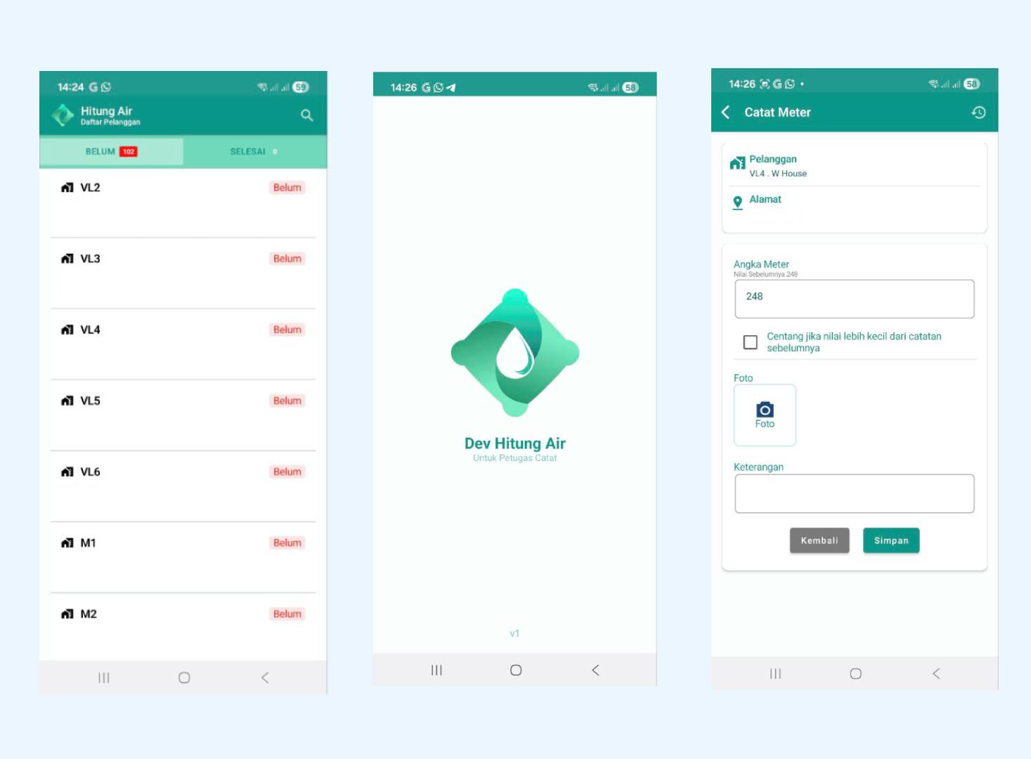 Dirancang untuk mempermudah petugas dalam mencatat angka meter pelanggan secara cepat dan akurat. Dengan sistem input langsung ke database beserta foto meteran, setiap data pemakaian tercatat otomatis tanpa perlu proses manual, meminimalkan kesalahan dan mempercepat pembuatan laporan bulanan.
